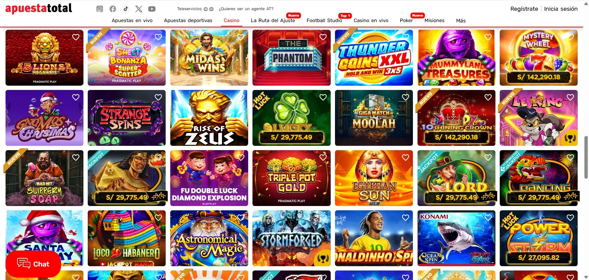 - Límites mínimos: muchas slots y mesas en vivo permiten apuestas desde montos bajos, típicamente desde PEN 0.10–1.00 en tragamonedas y desde PEN 1–5 en mesas RNG; los límites exactos dependen del título y la mesa.